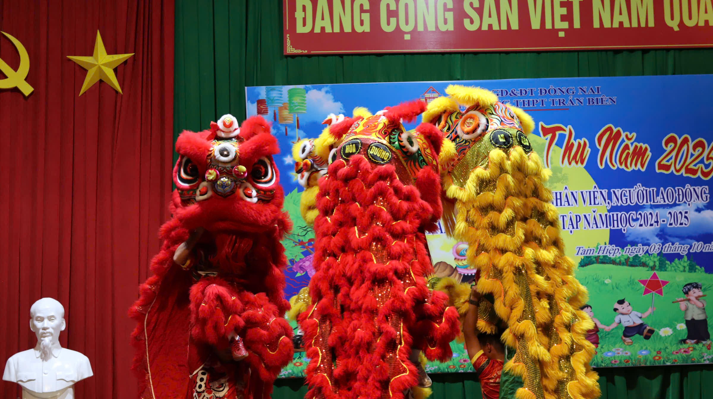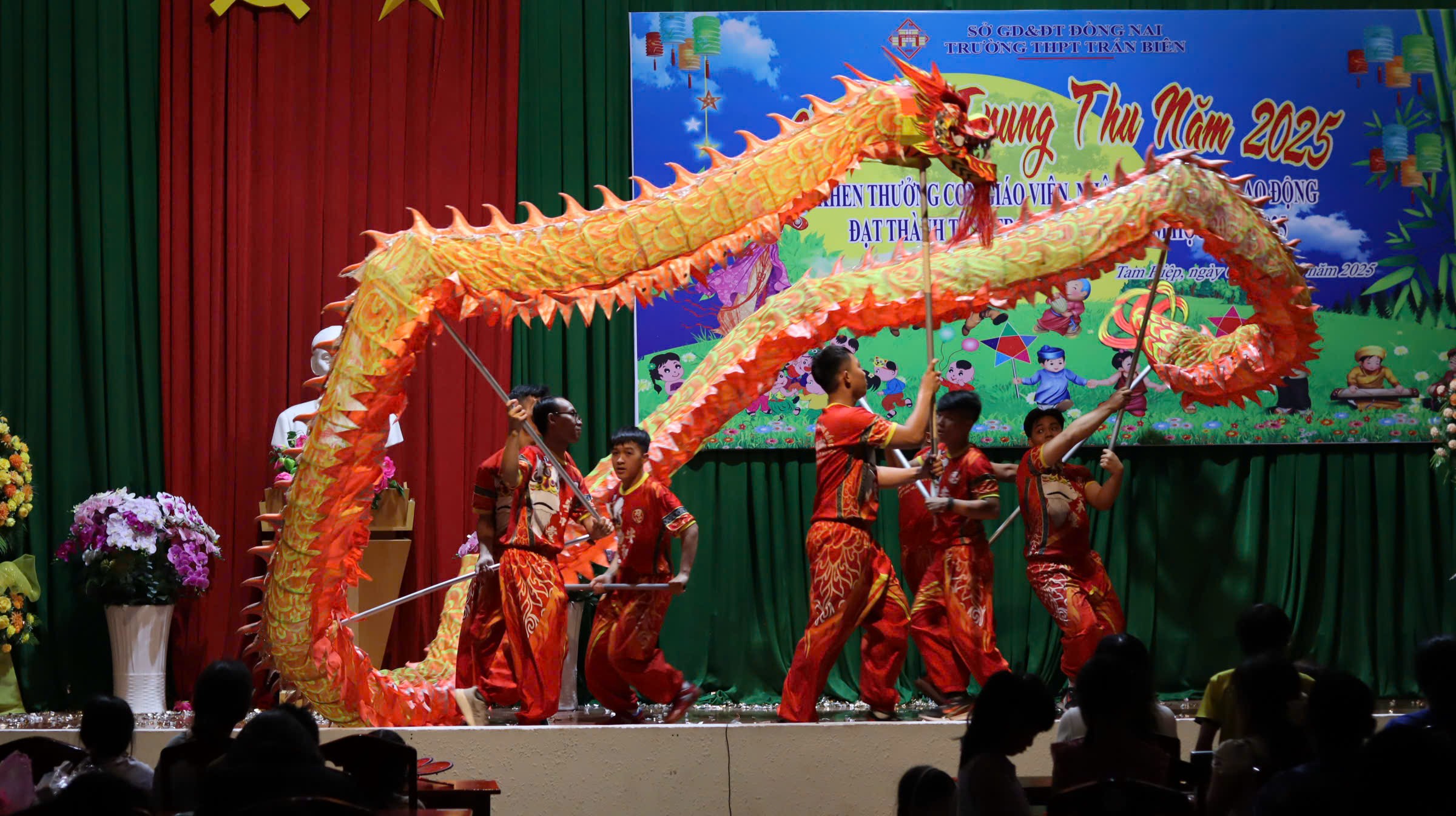 Tối Trung thu năm nay, sân khấu trường THPT Trấn Biên (Biên Hòa, Đồng Nai) rực rỡ ánh đèn, tiếng cười nói rộn vang khi “Đêm hội Trăng rằm” được tổ chức dành cho con em cán bộ, công nhân viên nhà trường. Đây là hoạt động thường niên, mang ý nghĩa gắn kết và sẻ chia, đem đến cho các em thiếu nhi một mùa trăng trọn vẹn niềm vui.