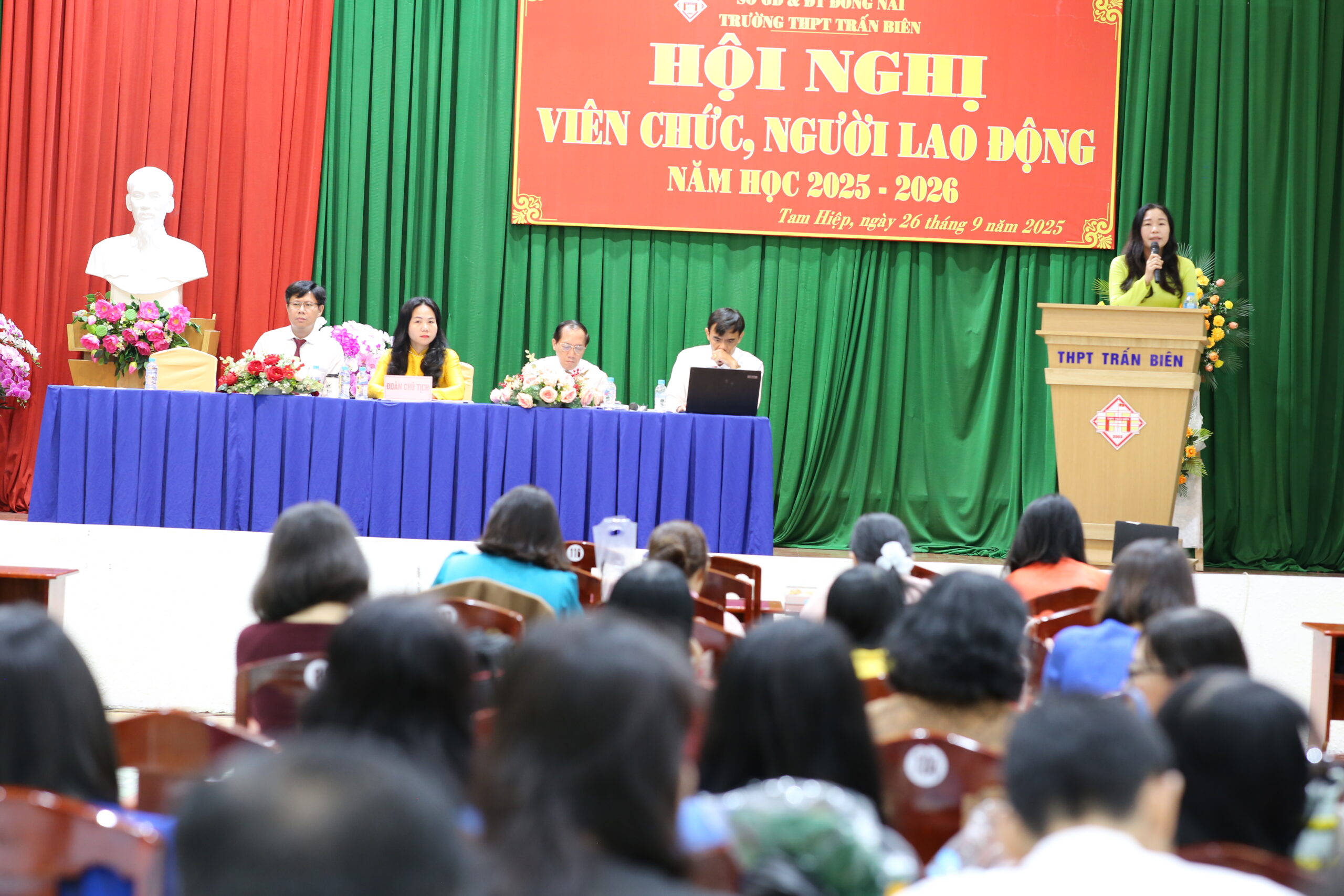 Hội nghị viên chức, người lao động năm học 2025 – 2026 đã khép lại trong tinh thần đoàn kết, thống nhất và quyết tâm cao. Với sự đồng thuận của tập thể cán bộ, giáo viên, nhân viên cùng sự đồng hành của phụ huynh, học sinh và các cấp lãnh đạo, Trường THPT Trấn Biên tin tưởng sẽ gặt hái thêm nhiều thành công mới, góp phần nâng cao chất lượng giáo dục trên địa bàn thành phố Biên Hòa.